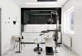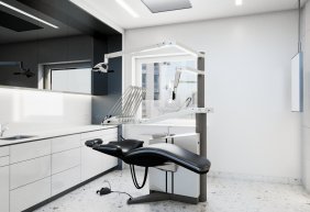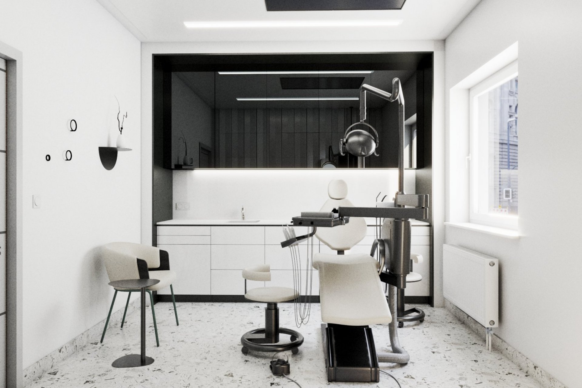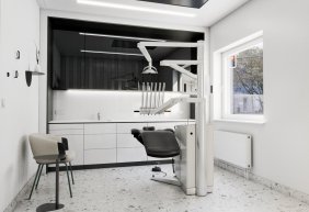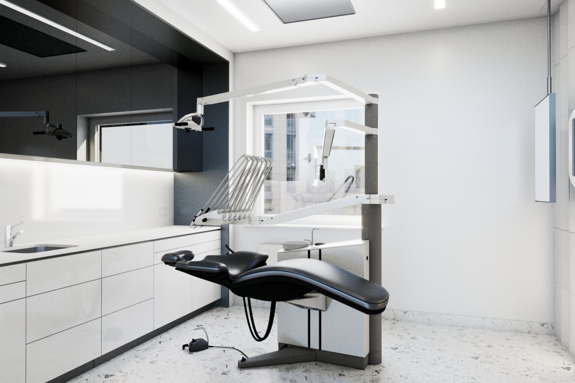 Nowoczesny gabinet stomatologiczny zaprojektowany z myślą o funkcjonalności i estetyce. Ergonomiczne, w pełni zintegrowane stanowisko pracy zapewnia wygodny dostęp do narzędzi i optymalną organizację przestrzeni. Jasna kolorystyka i minimalistyczny design sprzyjają sterylności oraz łatwości utrzymania czystości. Precyzyjne oświetlenie oraz zaawansowany unit dentystyczny gwarantują komfortową pracę w każdych warunkach.
